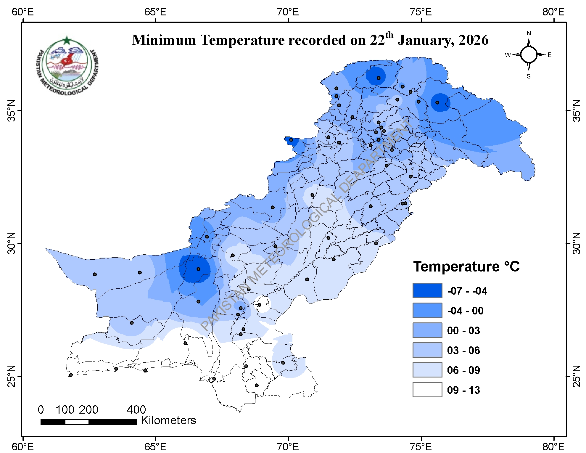 Today’s Recorded Lowest Minimum Temperature’s: Leh -11, Gupis, Skardu, Bagrote, Parachinar -05, Kalam -04 and Malam Jabba -03.